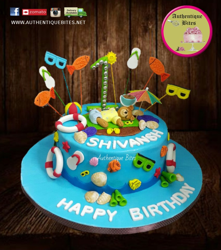 1465901201600 Published June 15, 2016 at 1386 × 1570 in Baby & Children Designer Cakes BPFC 02 – Teddy Beach Party Cake