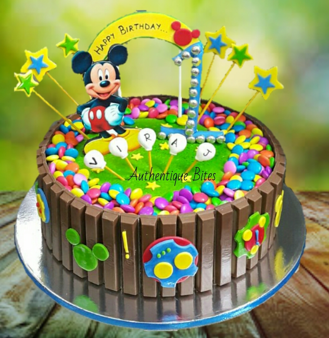 1472492594201 Published October 18, 2016 at 1062 × 1091 in Baby & Children Designer Cakes DTC317 – Mickey Gems Kitkat Cake