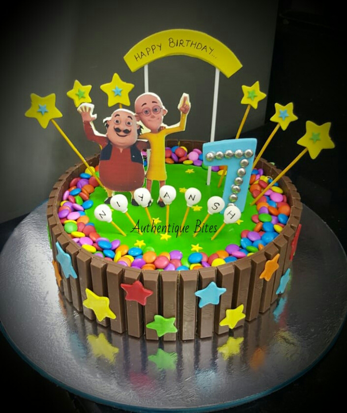 1529938646346 Published June 26, 2018 at 706 × 841 in Baby & Children Designer Cakes DTC 474 – Motu Patlu Kitkat Cake