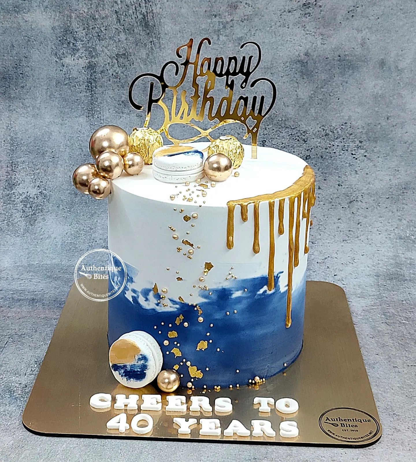 119 Published May 6, 2023 at 1440 × 1598 in Teen & Adult Designer Cakes AB 1270 – Navy White Gold Pineapple Cake