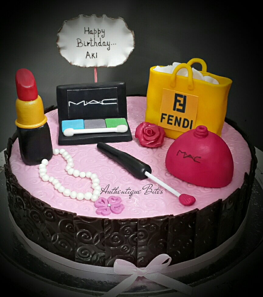 Published October 29, 2014 at 865 × 975 in Teen & Adult Designer Cakes DTC 197 – Cosmetic Shopping bag cake