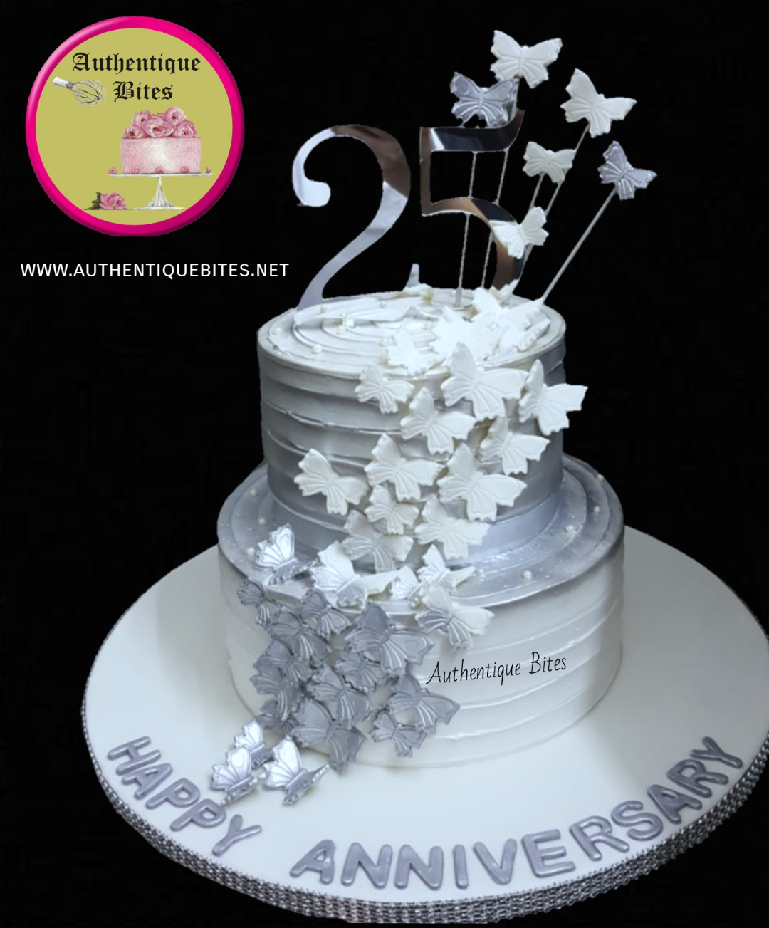 Screenshot_20181214-143729 Published December 14, 2018 at 1080 × 1303 in Teen & Adult Designer Cakes DTC 523 -Silver Butterfly Cake