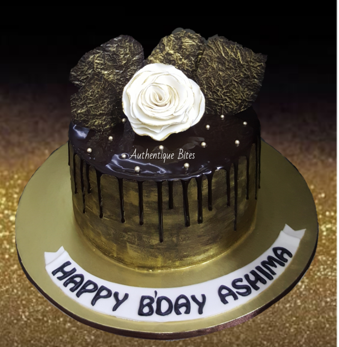 Screenshot_20190222-230555 Published February 23, 2019 at 1080 × 1104 in Teen & Adult Designer Cakes DTC 561 – Golden Shards Drip Cake