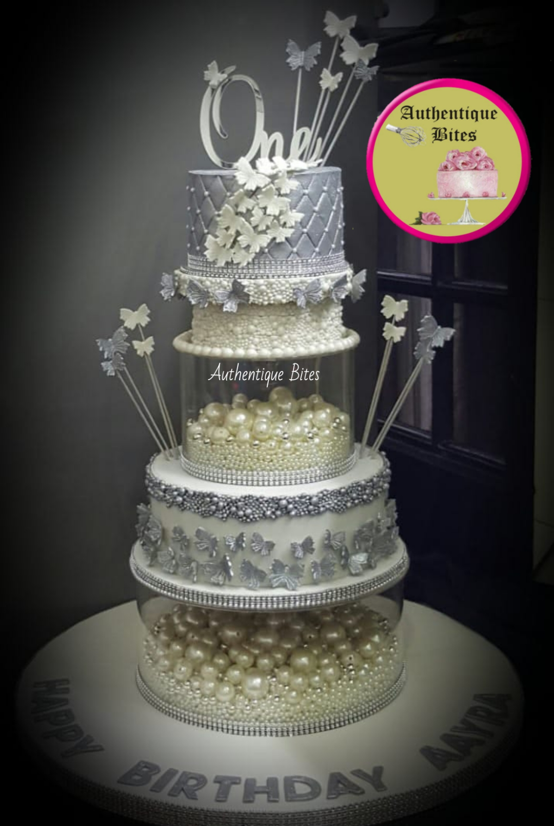 Screenshot_20190222-232211 Published February 23, 2019 at 1080 × 1608 in Teen & Adult Designer Cakes SBFC01- Silver Butterfle Pearly Cake