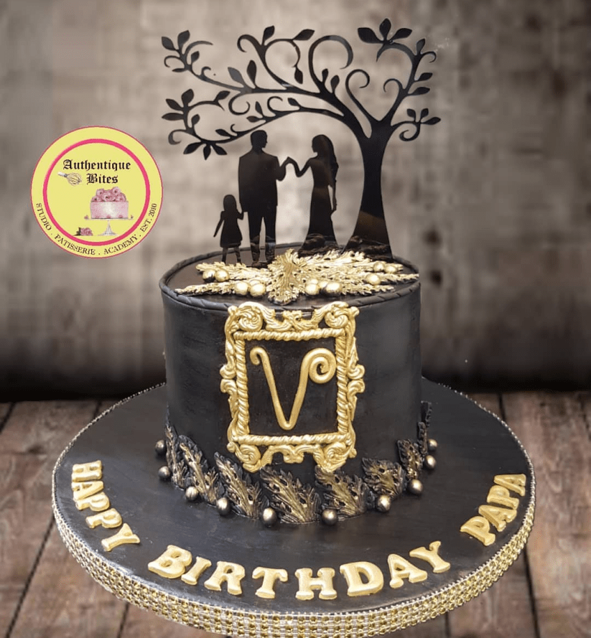 Screenshot_20191024-204436 Published October 25, 2019 at 1080 × 1166 in Teen & Adult Designer Cakes GBFC02 – Gold Black Vintage Cake