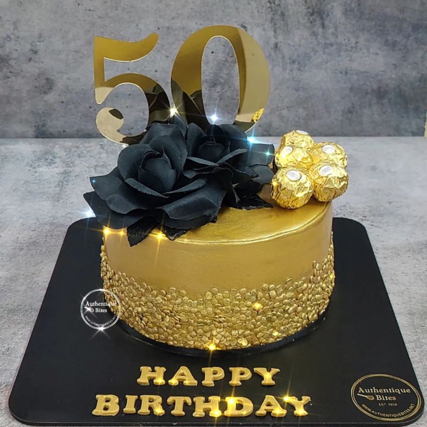 49 Published May 5, 2023 at 1440 × 1440 in Wedding & Anniversary Designer Cakes AB 1073 – Black & Gold Cake